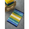 Das Design lebt von seinen leuchtenden, klaren Farben. Die Kombination aus Blau-, Grün- und Gelbtönen erinnert an Meer, Sonne und Vegetation und bringt eine frische, positive Atmosphäre in den Raum. Die Streifen wirken lebendig und setzen einen bewussten, farbigen Akzent.