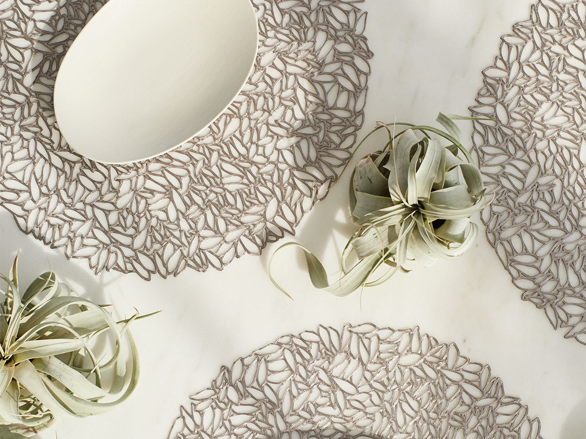 Vor allem durch Experimentierfreude und zahlreiche kreative Ideen sind die Tischsets von Erfinderin Sandy Chilewich weltweit so beliebt. Chilewich produziert ausschließlich in New York und ist bekannt für ihr neues Webverfahren und die Verwendung von besonders hochwertigen Materialien. Diese widerständigen Stoffe zeichnen sich durch ihre lange Haltbarkeit und einfache Reinigung aus.
